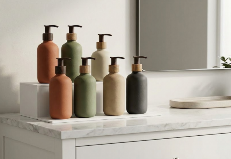 - ทริคจับคู่ : ลองจับคู่ตัวขวดสีเบจผิวด้าน (Matte) เข้ากับหัวปั๊มสีน้ำตาลเข้ม หรือสีลายไม้ รับรองว่าดูพรีเมียมและออร์แกนิกแบบสุดๆ